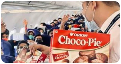 Product samples are distributed to the people inside the aircraft. Branding on thick cardboard cups used for serving passengers.